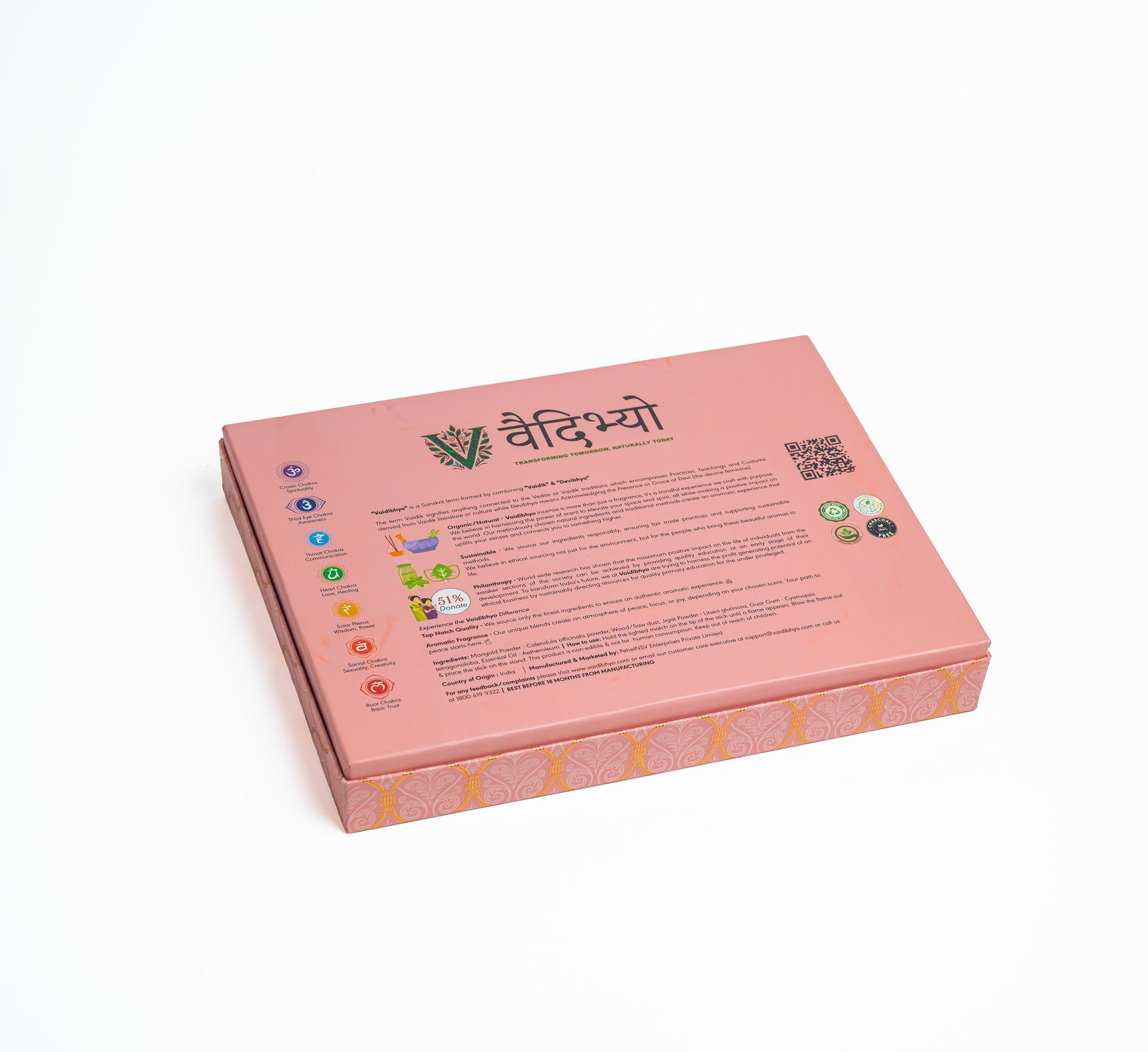 Experience the soothing aroma of Vaidibhyo Luxury Incense Products. These herbal pooja items are perfect for spiritual practices and come in eco-friendly packaging.